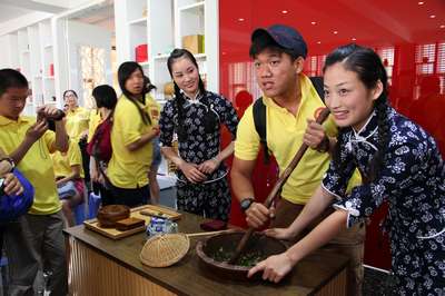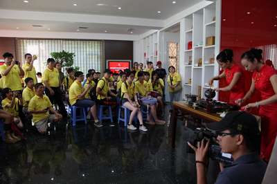 由来自美国、墨西哥等等10个国家的海外台湾留学生以及部分国内大学生组成的文化寻根夏令营营员们来到武夷星,观看了大红袍、浪漫红茶、擂茶等茶艺表演,并现场参与擂茶表演,并与现场互动。观看完制茶工序介绍后,主持人以问答方式与学员们互动,在互动问答中增进了解了武夷山茶文化的内容与特点。