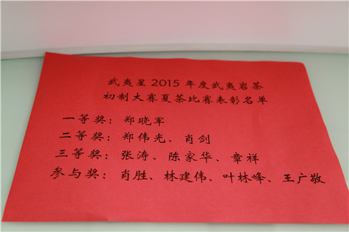 武夷星2015年度武夷岩茶初制大赛夏茶比赛表彰名单